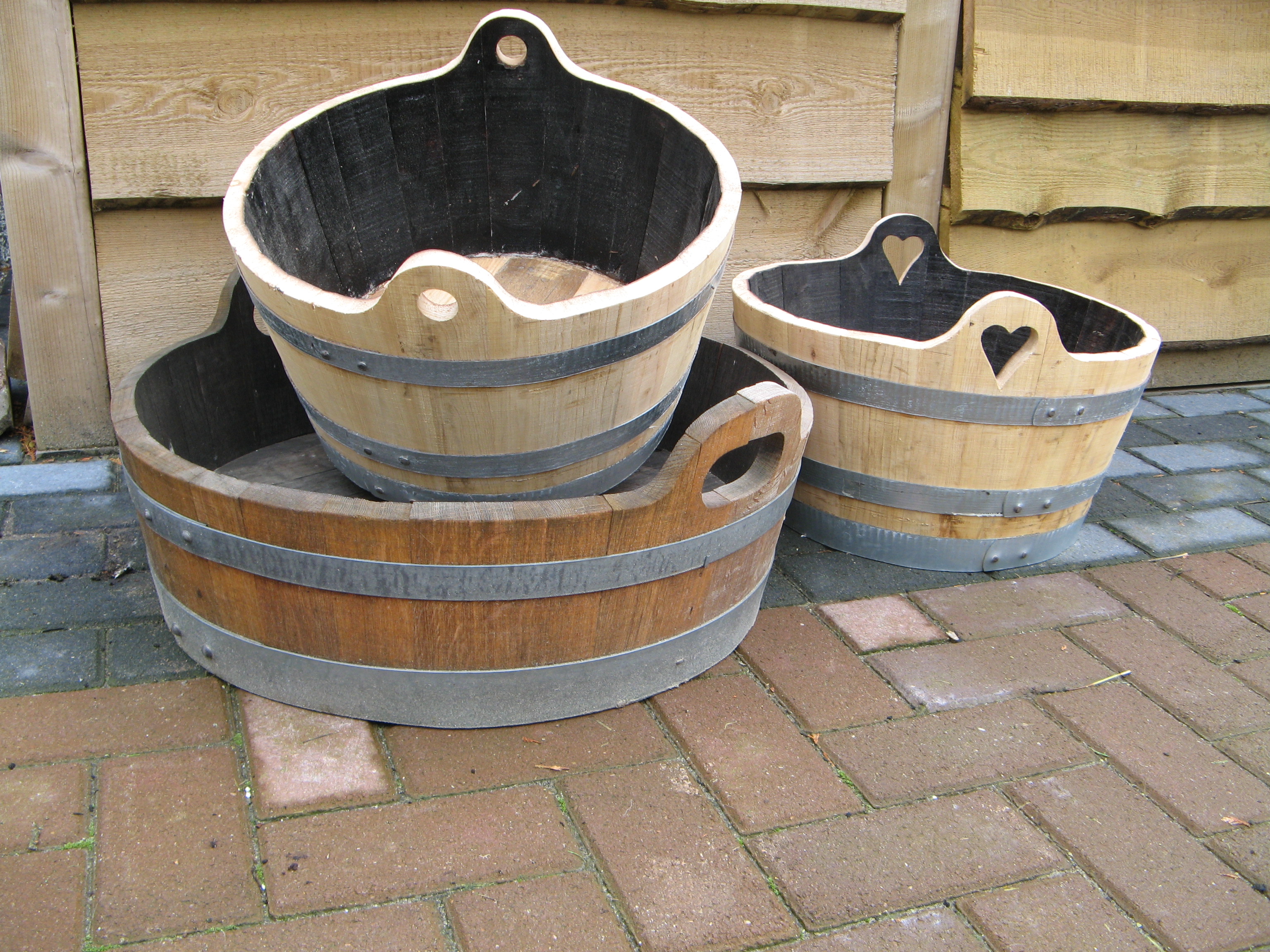 - eikenhouten bloem of vijverbakken met diverse handgrepen