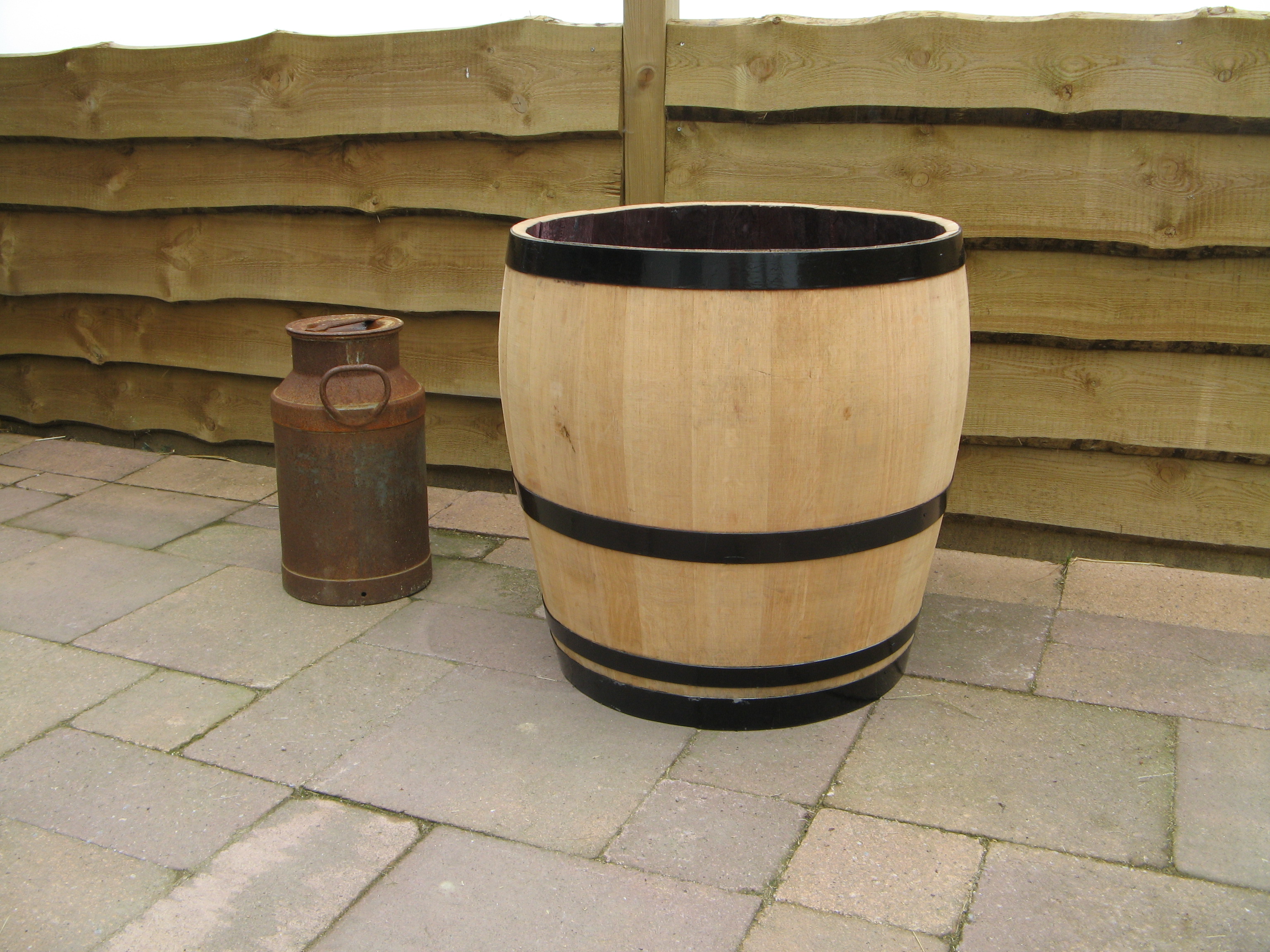 - eikenhouten palm ton met zwarte banden en olie behandeld vraag naar meerprijs