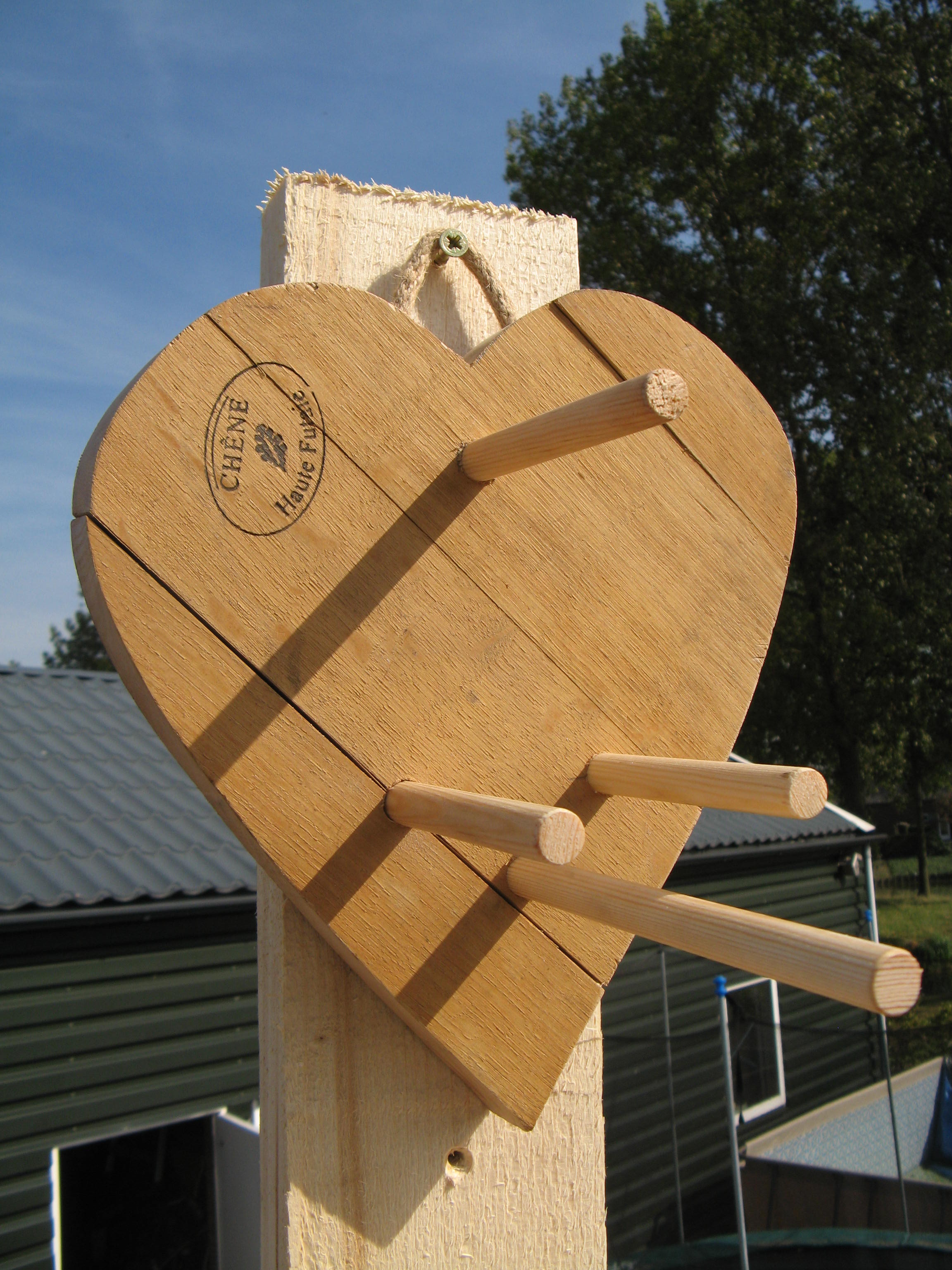 - Eikenhouten vogelvoederhart (pindakaaspot)