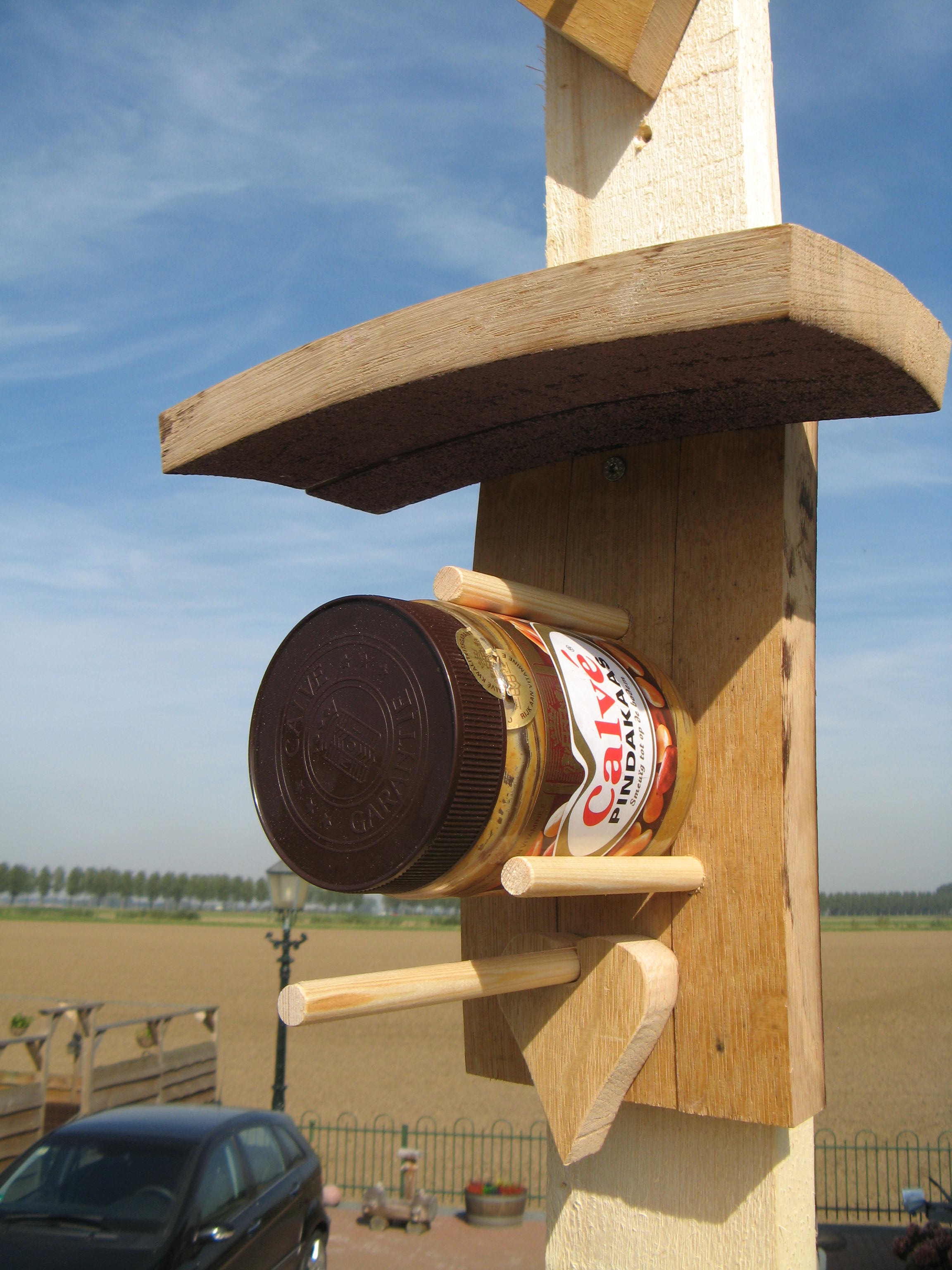 - Ekenhouten vogelvoederhuis (pindakaaspot)